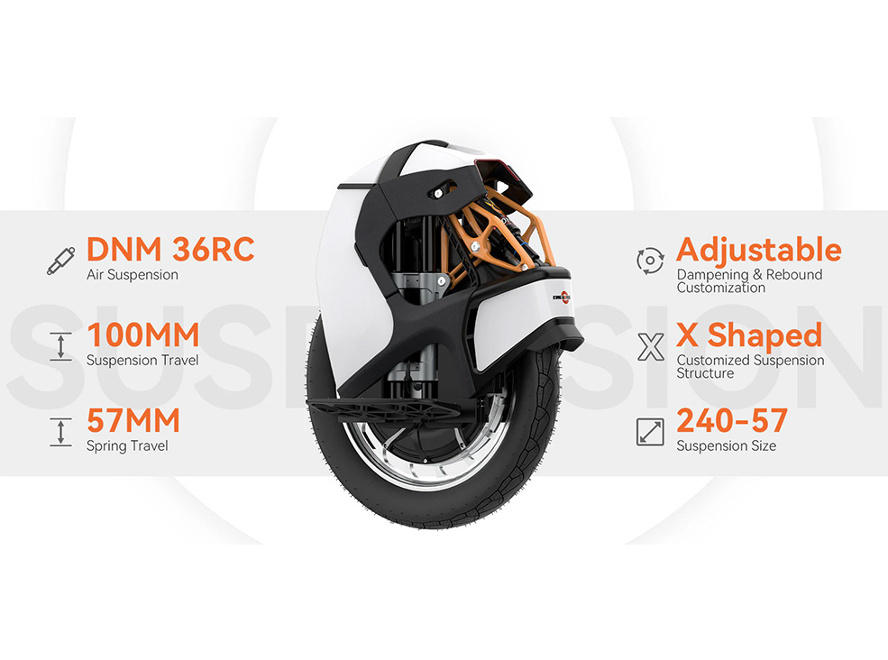 KingSong S18 Pro+ paistab silma oma täiustatud õhkvedrustusega, mis muudab iga sõidu sujuvaks ja kontrollitud kogemuseks. Erinevate maastikega kohanduv süsteem pakub erakordset mugavust ja stabiilsust — muutes nii linnasõidud kui ka maastikuseiklused võrdselt nauditavaks.