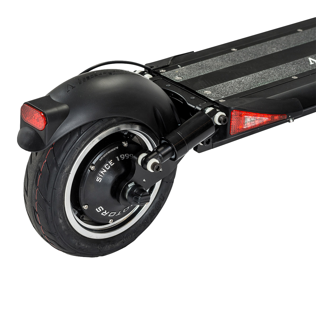 10-tollised × 70 mm tubeless rehvid tagavad hea haarduvuse ja aitavad vähendada rehvipurunemise riski. Tänu modulaarsele rattasüsteemile on rehvide vahetamine lihtsam ja kiirem, sest selleks ei pea mootoreid lahti võtma.