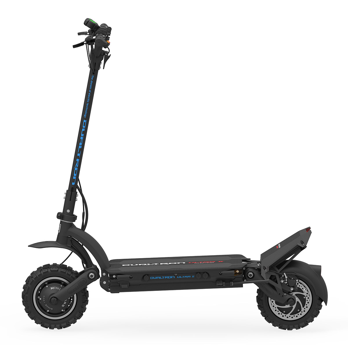 Dualtron on sähköpotkulautojen huippuluokkaa – Minimotorsin brändi, joka tunnetaan suuresta tehosta, kehittyneestä jousituksesta ja tinkimättömästä rakennuslaadusta. Dualtron-mallit on suunniteltu ajajalle, joka arvostaa suorituskykyä ja luotettavuutta. Moderni teknologia ja laadukkaat materiaalit takaavat vakaan ajokokemuksen erilaisilla tienpinnoilla.