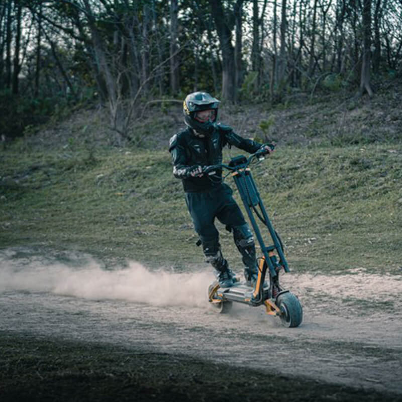 RS (Racing Sport) on suunniteltu nopeuteen, toimintamatkaan ja kuljettajan mukautumiskykyyn. Se on tehokas kaksimoottorinen maastopotkulauta, jossa on 4-portainen säädettävä jousitus, IPX7-vesitiivis akku, Zoom-hydrauliset jarrut ja DIY-ystävälliset päivitysmahdollisuudet.