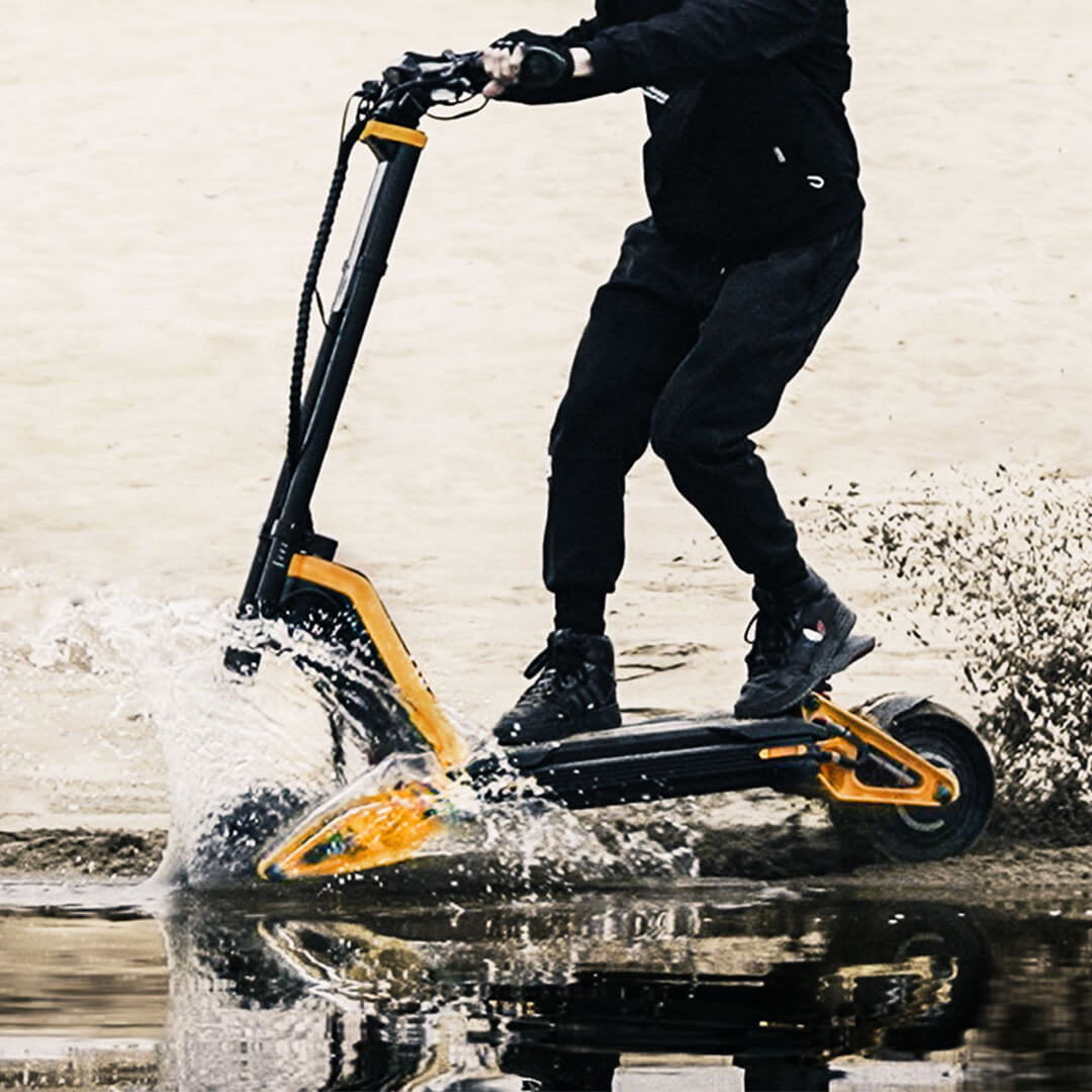 Monissa sähköpotkulaudoissa on roiskeenkestävät (IP-luokitellut) komponentit, jotka kestävät kevyttä sadetta ja märkiä ajo-olosuhteita. Elektroniikan suojaamiseksi ja käyttöiän pidentämiseksi on kuitenkin hyvä välttää kovaa sadetta ja syviä lätäköitä.