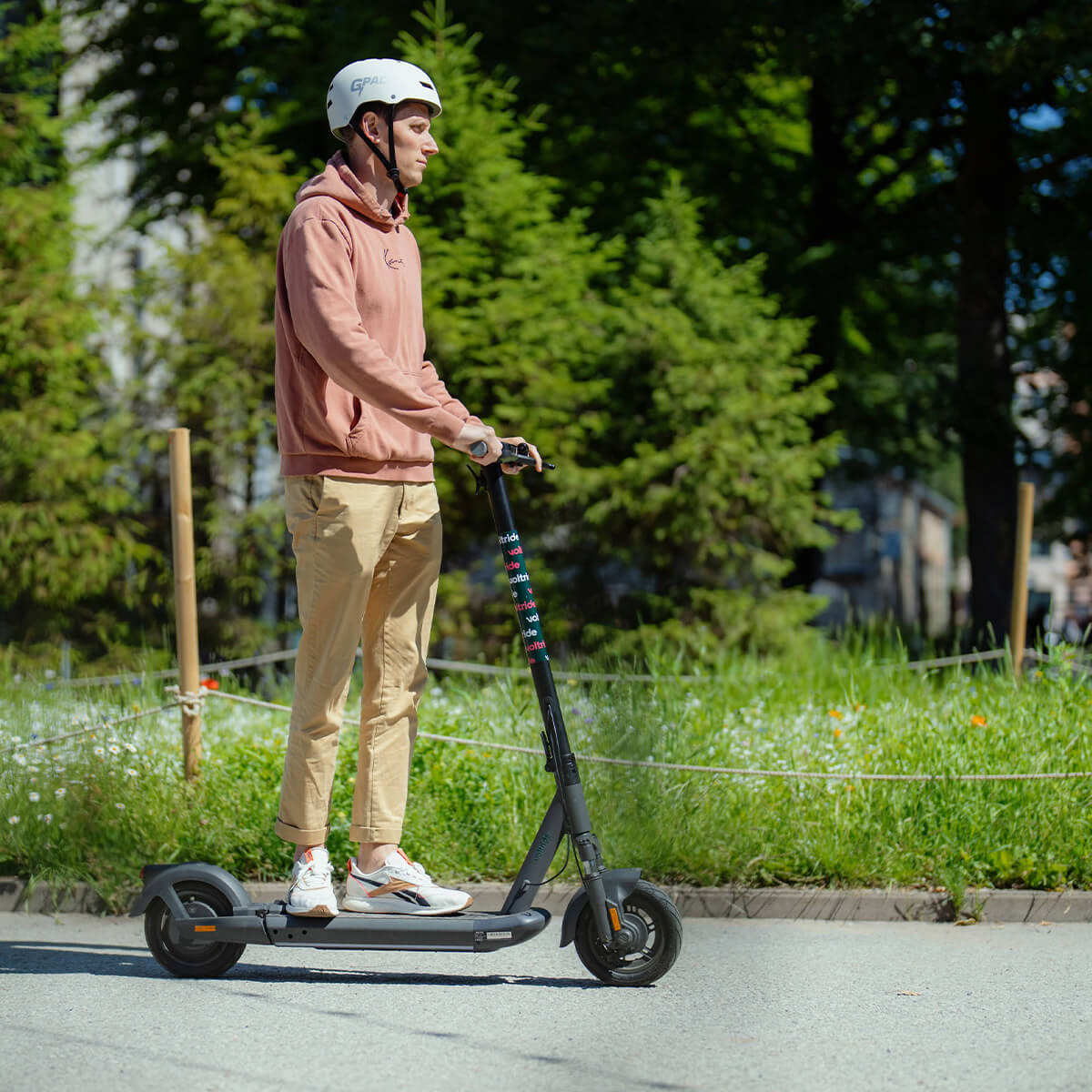 Loukkaantumisriskin vähentämiseksi käytä kypärää ajaessasi sähköpotkulaudalla ja mielellään myös muuta suojavarustusta, kuten polvi-, ranne- ja kyynärsuojia.