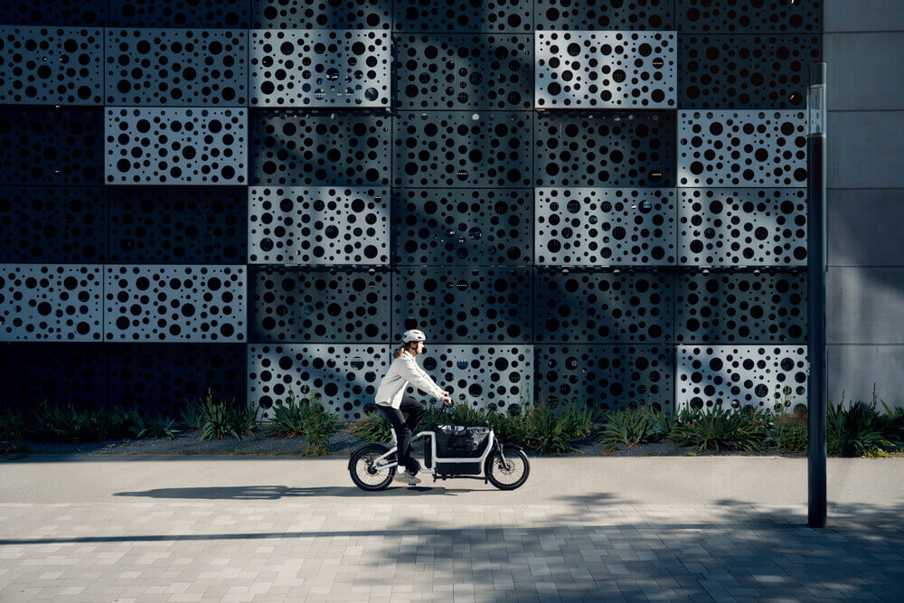 Electric bike Riese Müller Carrie redefines sustainable urban transport with its compact design and maximum loading capacity.